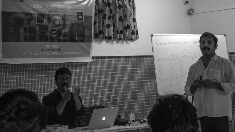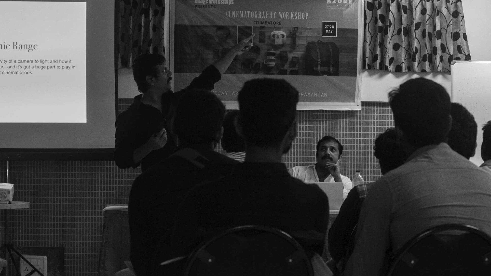 During Day one, we introduced every technology of light capture, spawning from still to motion picture capture. We started with the working principles of a basic camera function and its operating principle, articulated to how it forms the fundamental of the field of cinematography and gone to the extent of the fundamentals of modern digital camera’s internals. We explained the current camera models prevailing in Tamil and Indian cinema industries, their key features, differences and importance. We spoke them all in detail in day one.